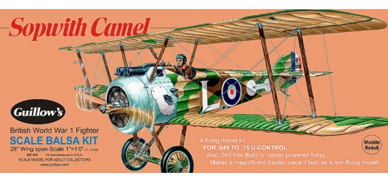 SOPWITH CAMEL 71cm 1/12 BALSA KIT PER VOLO LIBERO – RADGUI801