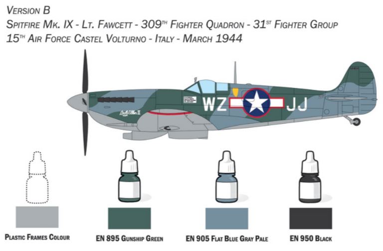 Il caccia Supermarine Spitfire si può considerare, senza dubbio, uno tra i più celebri aerei della Storia dell’aviazione ed un’icona della produzione aeronautica britannica. Aereo monomotore ad ala bassa, dotato di un buon armamento offensivo, costituì, nelle prime versioni, assieme all’Hawker Hurricane la spina dorsale dei reparti da caccia della Royal Air Force durante la Battaglia d’Inghilterra contro la Luftwaffe tedesca. La vittoria nella Battaglia di Inghilterra contribuì a garantire un forte prestigio allo Spitfire. Si caratterizzava, per il suo design armonioso, l’ala ellittica e il potente motore Rolls-Royce Merlin. Nel corso della guerra, per rispondere alle innovazioni tecnologiche degli avversari che portarono allo sviluppo del formidabile Focke-Wulf Fw 190, lo Spitfire venne costantemente evoluto nella configurazione aerodinamica e nelle motorizzazioni. Entrò quindi in produzione lo Spitfire Mk IX che, grazie alle sue prestazioni, era in grado confrontarsi ad armi pari contro i più moderni caccia tedeschi.