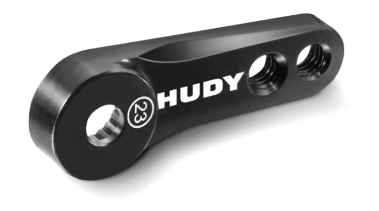 CNC-machined alu servo horn with offset for use on steering servos. Alu servo horn offers maximum steering control by eliminating the flex often associated with composite servo horns. Drilled and tapped for 3mm-linkage hardware. Two holes for linkage mounting allows quick & easy linkage angle change. Recommended for 1/10 and 1/8 on-road nitro cars.
