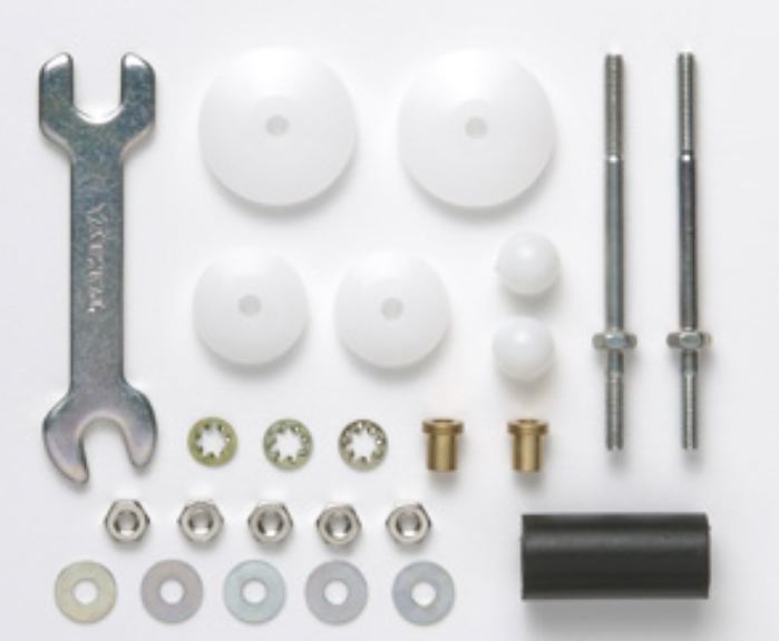 To prevent the head from rotating, ball stabilizer caps (natural color) and teethed washers are included.
