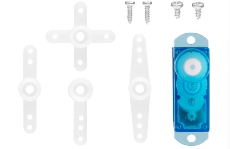 Piko Servo 3,7g con ingranaggi in plastica per piccoli elettroliti. Spinta 0,8 kg / cm, velocità 0,14 s / 60 st a 4,8 V, dimensioni 19,8×8,4×21,3 mm, alimentazione 4,8-6,0 V.