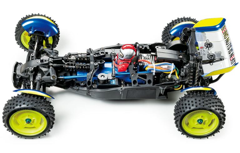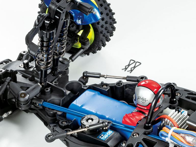 Richiede: radio a 2 canali, servosterzo, ESC, motore di dimensioni 540, batteria da 7,2-7,4 volt con caricabatterie compatibile e vernice Tamiya PS per completare.