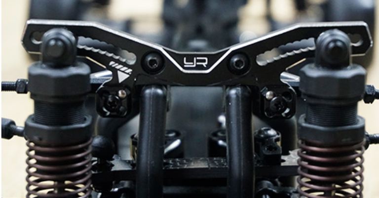 Supporto ammortizzatori anteriore in alluminio a basso profilo per Yokomo YD2, permette il montaggio di carrozzerie molto basse.
