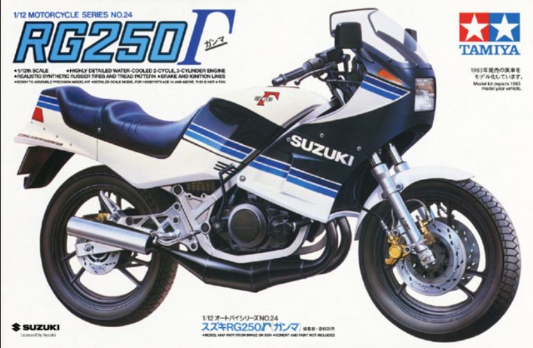 L’RG250 ha beneficiato notevolmente della tecnologia sviluppata da Suzuki per le competizioni. Utilizzava un telaio a doppia culla in alluminio con un motore a 2 cilindri da 247 cc che forniva 45 CV, oltre a pneumatici dedicati.