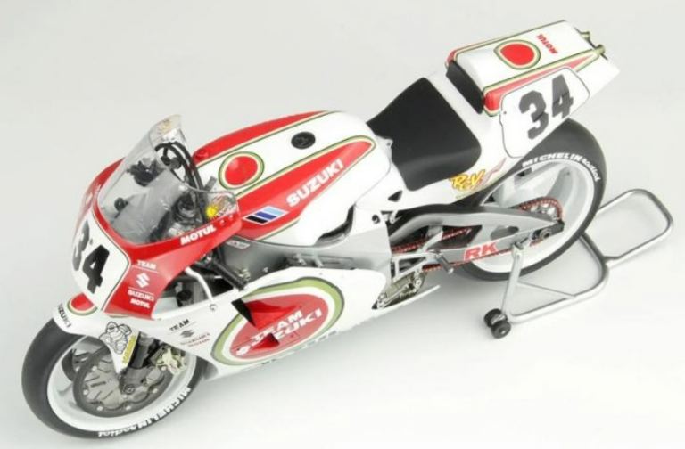 Beemax, molto attiva nella produzione dei modelli di auto in scala 1:24 ha il piacere di introdurre una nuova linea di modelli, questa volta moto in scala 1:12. Il primo modello della linea moto 1:12 è la Suzuky RGV protagonista del mondiale 500 nella stagione 1993. Semplici istruzioni permettono la costruzione del modello. Set di fotoincisioni permettono laggiunta di ulteriori dettagli.