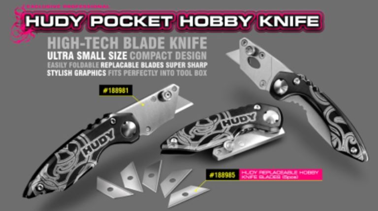 Il minuscolo coltello tascabile per hobby è un accessorio RC must have . Il coltello è pieghevole per renderlo molto compatto. Le lame sono sostituibili e disponibili come ricambio in un set di 5 pezzi in una scatola protettiva di plastica codice 188985