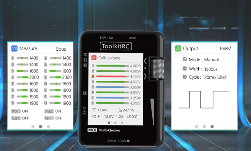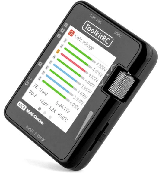 L’MC8 è uno strumento compatto e un dispositivo di misurazione. Il design elegante, combinato con il display IPS a colori vivaci, lo rende facile e piacevole da usare. E con un’eccezionale precisione fino a 5 mV, questo multi-checker stabilisce un nuovo standard di precisione. Che tu sia un appassionato di droni, un pilota di auto RC o semplicemente un esperto di tecnologia, l’MC8 è il compagno ideale per il test e il monitoraggio della batteria.