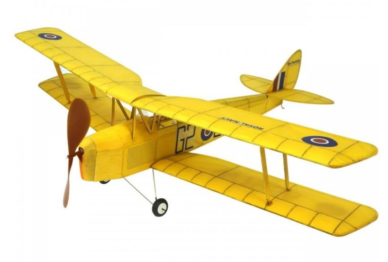 Questo Tiger Moth è stato sviluppato da noi come kit di costruzione in legno tagliato al laser. Il modello è facile da costruire e viene fornito con un elica con elastico.