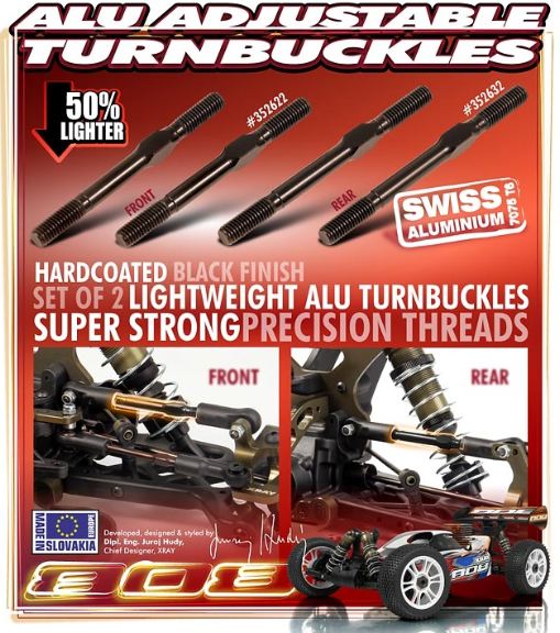 For serious racers who are conscious of weight savings, XRAY offers lightweight alu turnbuckles. Lighter by 50%.