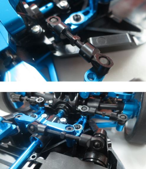 The Steering Tie Rod Set is adjustable which means you can easily adjust the toe angle of the front wheels to fit different tracks and road surfaces. Generally speaking, toe-in will allows are more stable drive in straight line and toe out will increase the initial turning responsiveness.