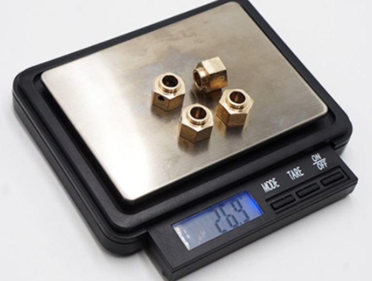Adattatori esagonali in ottone che aggiungono peso ai tuoi pneumatici.