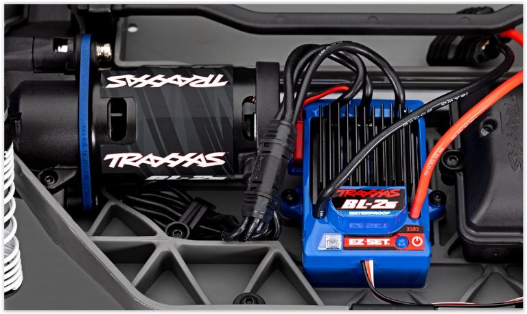 Il sistema di alimentazione Brushless BL-2 di Slash 4X4 aumenta il divertimento con fino al 60% di velocità in più e un’accelerazione più rapida rispetto ai sistemi di alimentazione a spazzole comparabili. L’efficienza migliorata, i cuscinetti a sfera ad alta velocità e una ventola di raffreddamento interna consentono a Slash 4X4 di funzionare batteria dopo batteria per un divertimento che dura tutto il giorno. Senza spazzole soggette a usura, il BL-2s 3300 kV è duraturo, affidabile e non richiede praticamente alcuna manutenzione. Il controllo elettronico della velocità impermeabile BL-2s racchiude potenti funzionalità come tre profili di guida separati, rilevamento di bassa tensione per batterie LiPo, Training Mode™ brevettato e protezione di spegnimento termico per prevenire il surriscaldamento. Il motore sensorless BL-2s da 3.300 kV con ventola di raffreddamento integrata offre elevate prestazioni brushless con una manutenzione quasi pari a zero.