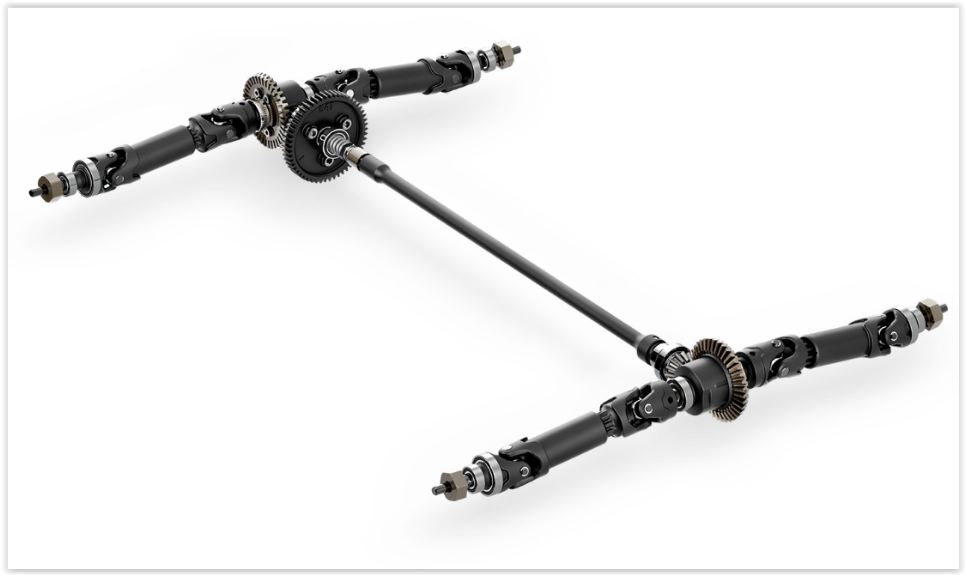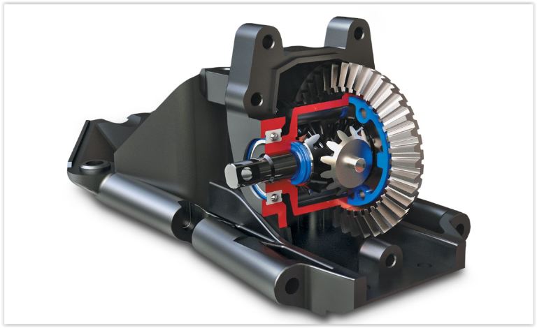 Differenziali anteriore e posteriore con ingranaggi in metallo riempiti ad olio