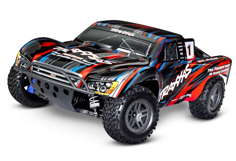 MODELLO 68154-4: Slash 4X4 Brushless: Short Course scala 1/10, assemblato,elettronica impermeabile: Ready-To-Race®, con sistema radio a 2 canali TQ 2.4 GHz, sistema brushless BL-2s, e carrozzeria verniciata con sistema di fissaggio senza clips. Sono necessari batterie e caricabatterie che non sono inclusi nella confezione