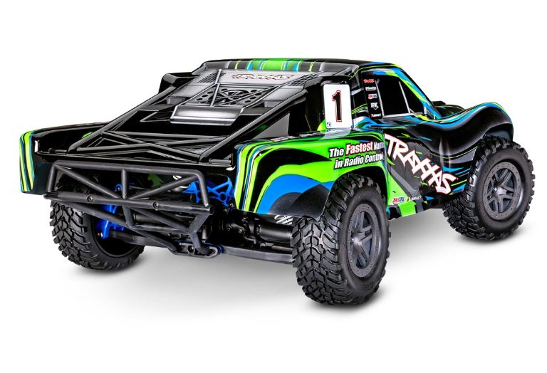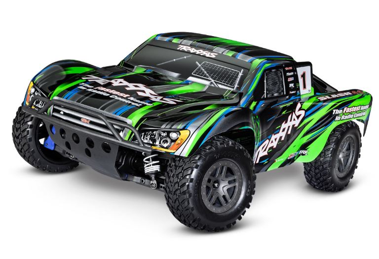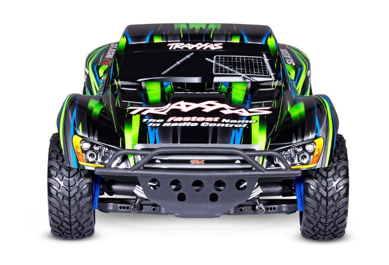 MODELLO 68154-4: Slash 4X4 Brushless: Short Course scala 1/10, assemblato,elettronica impermeabile: Ready-To-Race®, con sistema radio a 2 canali TQ 2.4 GHz, sistema brushless BL-2s, e carrozzeria verniciata con sistema di fissaggio senza clips. Sono necessari batterie e caricabatterie che non sono inclusi nella confezione