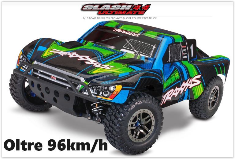 Slash 4X4 Ultimate viene fornito completamente assemblato con il sistema radio TQi da 2,4 GHz e il modulo wireless, sensori di telemetria, alimentazione brushless Velineon e carrozzeria verniciata senza clips. Aggiungi semplicemente la batteria e il caricabatteria di tua scelta per iniziare l’azione a tutto gas! Con oltre 30 anni nel settore dell’hobby, Traxxas fa il possibile per garantire che la tua esperienza RC sia facile e divertente