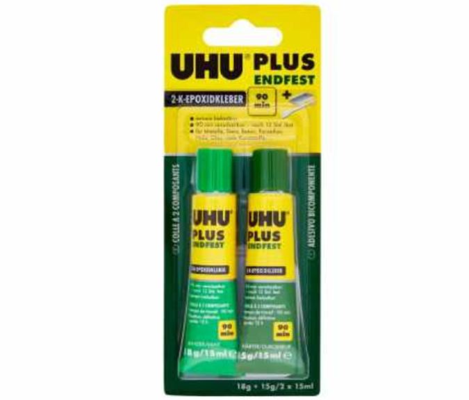 UHU Plus è adatto per incollare molte materie plastiche, metalli, pietra, calcestruzzo, porcellana, ceramica, legno, vetro e derivati del vetro, polistirolo espanso.