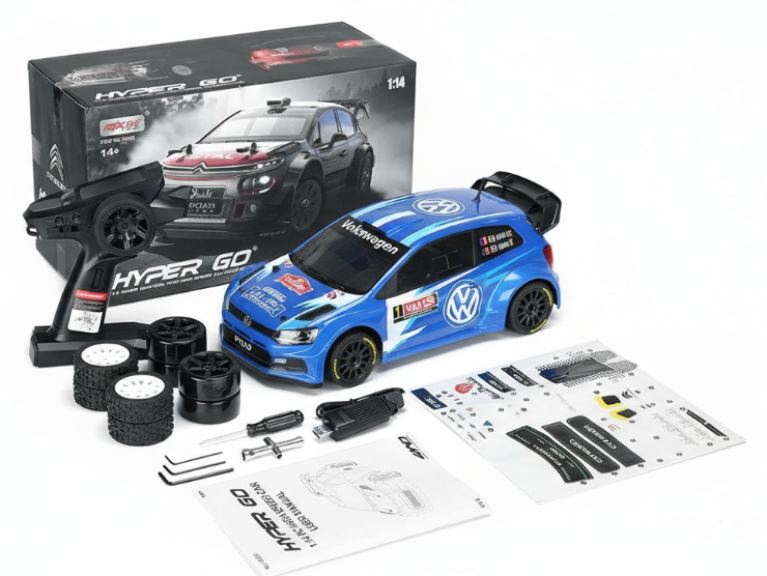 L’MJX HYPER GO 14304 Volkswagen Polo R WRC è un’agile auto da rally/drift in scala 1/14 dotata di elettronica moderna e propulsione brushless. Il suo telaio resistente, i componenti della trasmissione interamente in metallo e gli ammortizzatori in alluminio riempiti d’olio garantiscono una manovrabilità precisa sia su asfalto liscio che su piste da rally con buona aderenza. Con un ESC brushless da 45A, giroscopio integrato, motore 2845 e sistema radio completamente proporzionale a 2,4 GHz, la 14304 offre una forte accelerazione, uno sterzo preciso e velocità fino a 43 km/h.