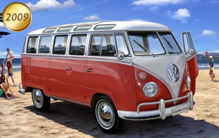 The original of all present-day vans and transporters dates back to the platformtruck used in the late 1940s for internal transport at the Volkswagen works at Wolfsburg. It inspired the Dutch importer Ben Pon with the idea of a transport vehicle. At the end of the 1940s VW developed several prototypes for a roomy vehicle suitable for transport purposes. As none of the names they had in mind for it was available for unrestricted use, the new vehicle class received the name Transporter . From 8th March 1950 the first generation of the transporter went into production. The truck with its typical V shaped front and split windscreen was available in various versions, including a minibus. The technology was based on the Volkswagen Type 1, so called Beetle so that the T1 had an air-cooled, 4-cylinder, horizontally opposed engine. This reliable rear engine had a capacity of 1.2 litres which was increased to 34 hp in 1961. The deluxe version of the minibus, the special nine-seater model, is still known as the Samba Bus and, with its oval roof windows, very comfortable seats, a folding roof and very many chrome parts, has an unmistakable automobile charm.