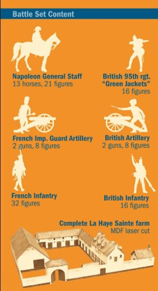 Dal 16 al 18 giugno 1815 le truppe Francesi e le truppe della coalizione alleata si fronteggiano sui campi di battaglia del Belgio. Ligny e Quatre-Bras hanno anticipato la celebre e più famosa battaglia della Storia militare. Una data, un luogo: 18 giugno 1815, Waterloo. Wellington considerava la fattoria de La Haie Sainte un punto fondamentale su cui impostare il suo schieramento difensivo. Nel pomeriggio Napoleone ordina al Maresciallo Ney di conquistare la fattoria in modo da ottenere un avamposto strategico e poter cambiare le sorti dello scontro. La posizione è strenuamente difesa dalle truppe alleate, che avevano fortificato il complesso di edifici fin dalla mattina. Lo scontro è feroce e le truppe francesi, supportate dallartiglieria, riescono a conquistare La Haie Sainte solo nel tardo pomeriggio. Alle 19, grazie al valore strategico della fattoria, la Guardia Imperiale francese può iniziare lassalto ma ormai è troppo tardi. Le truppe prussiane di Blucher, invano inseguite dal Maresciallo Grouchy, si presentano in soprannumero sulla destra dei francesi.