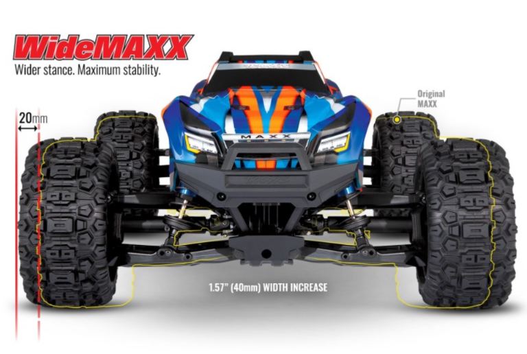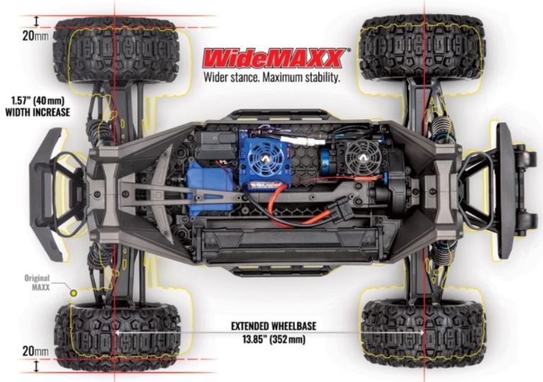 Queste sono le basi si cui si fonda l’esperienza Traxxas Maxx . Il MAXX VXL4S e’ piu’ piccolo e compatto del fratello maggiore Xmaxx, ma garantisce prestazioni ugualmente di livello altissimo: velocita’ massima oltre 100 Kmh utilizzando una batteria Lipo 4S ed un rapporto di trasmissione piu’ lungo (acquistabile separatamente). Il Traxxas Maxx ridisegna nuovamente il concetto di Monster Truck.