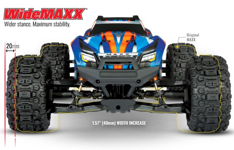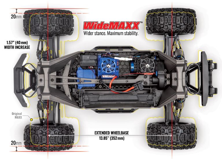 Queste sono le basi si cui si fonda l’esperienza Traxxas Maxx . Il MAXX VXL4S e’ piu’ piccolo e compatto del fratello maggiore Xmaxx, ma garantisce prestazioni ugualmente di livello altissimo: velocita’ massima oltre 100 Kmh utilizzando una batteria Lipo 4S ed un rapporto di trasmissione piu’ lungo (acquistabile separatamente). Il Traxxas Maxx ridisegna nuovamente il concetto di Monster Truck.