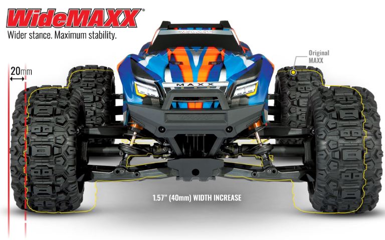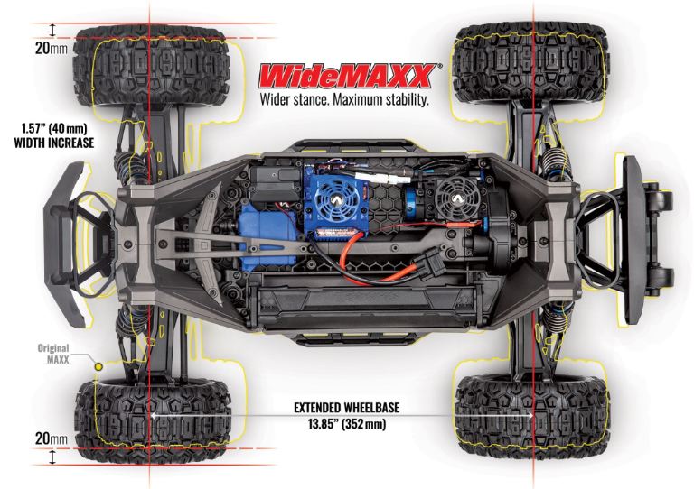 Queste sono le basi si cui si fonda l’esperienza Traxxas Maxx . Il MAXX VXL4S e’ piu’ piccolo e compatto del fratello maggiore Xmaxx, ma garantisce prestazioni ugualmente di livello altissimo: velocita’ massima oltre 100 Kmh utilizzando una batteria Lipo 4S ed un rapporto di trasmissione piu’ lungo (acquistabile separatamente). Il Traxxas Maxx ridisegna nuovamente il concetto di Monster Truck.