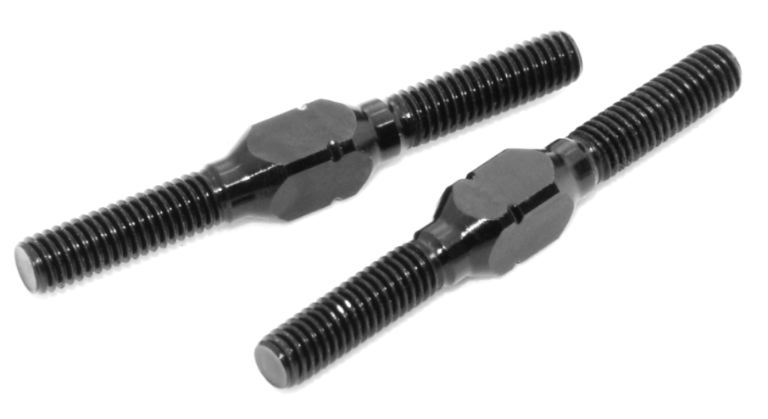 Tiranti regolabili M3 sinistro e destro realizzati in alluminio 7075 T6 resistente e leggero. Filettatura di precisione per una regolazione fine della punta. Lunghezza di 30 mm. Colore nero. Set di 2.