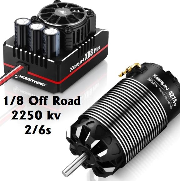 Combo Hobbywing composto da ESC Xerun XR8 Plus 150A + Motore 4274-2250kV G3, con questa combo per 1/8 Off-road e Monster 1/8 non ci sono limiti nelle prestazioni !