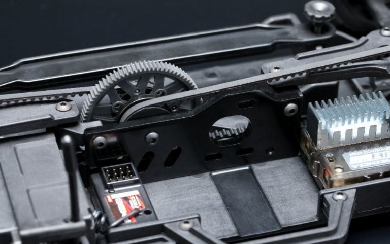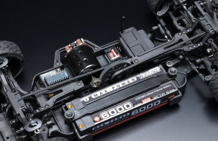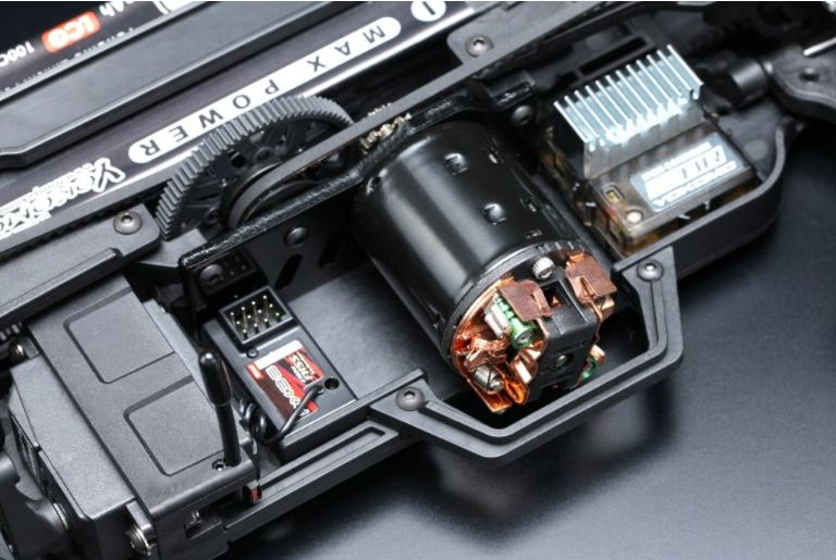 Il telaio principale e il ponte superiore sono realizzati in resina, consentendo una guida fluida con un forte senso di contatto con il terreno. Le cinghie anteriore e posteriore hanno la stessa lunghezza, quindi ci sono poche stranezze nel comportamento in risposta al funzionamento dell’acceleratore, e la caratteristica principale è la sua scorrevolezza in curva. Inoltre, l’RS2.0 ha un supporto motore completamente nuovo, che gli permette di essere equipaggiato con un motore a spazzole così com’è. La compatibilità con una gamma più ampia di fonti di alimentazione è stata ampliata, rendendolo più facile da gestire.