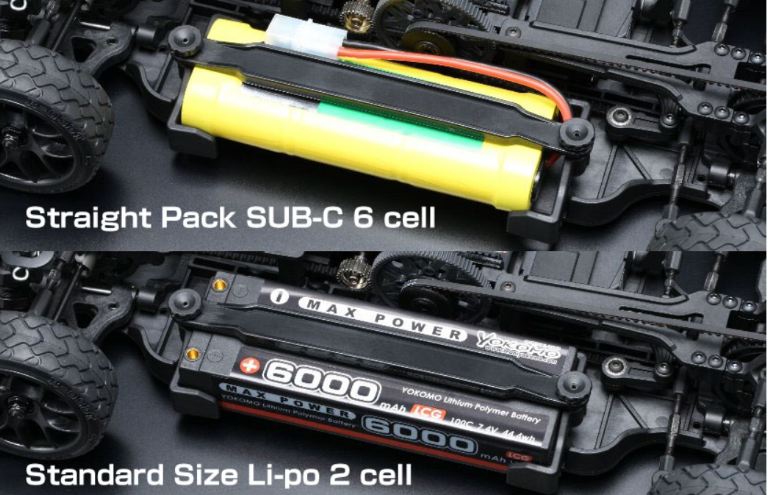 Il supporto della batteria è compatibile sia con le batterie rotonde Sub-C a 6 celle che con le batterie Li-po quadrate.